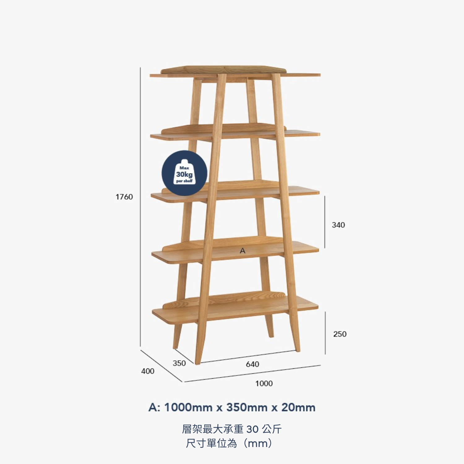 商品詳情 凱爾置物架 材質 框架:MDF+白蠟木貼面 層架:橡木 顏色 框架:原木色 層架:原木色 規格 尺寸 (cm):寬100 深40 高175.9 毛重 (kg):38.60 凱爾置物架*需簡易組裝* TWD $10,620 TWD $10,090